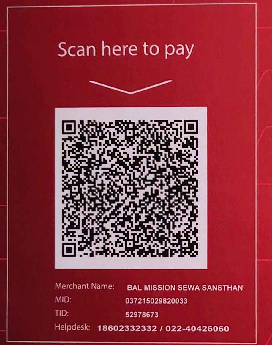 Bal Mission Seva Sansthan Bank - Axis Bank Account Number - 924010075204435 IFSC Code - UTIB0002982